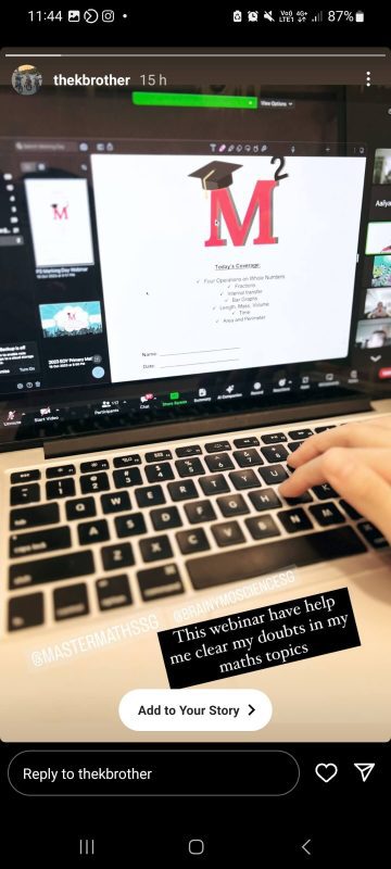 Topic: AY2025, P4 Maths - Marking Day Webinar Time: Oct 13, 2025 05:00 PM Singapore Join Zoom Meeting Meeting ID: 879 2700 2715 Passcode: 695113 | |||
